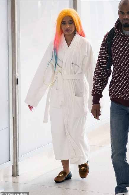 Cardi B arrives at the airport wearing a bathrobe (photos)